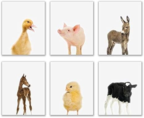 Amazon Com Crystal Baby Farm Animals Poster Prints Set Of 6 8x10 Adorable Furry Barn Portraits Wall Art Nursery Decor Calf Cow Chick Chicken Donkey Foal Horse